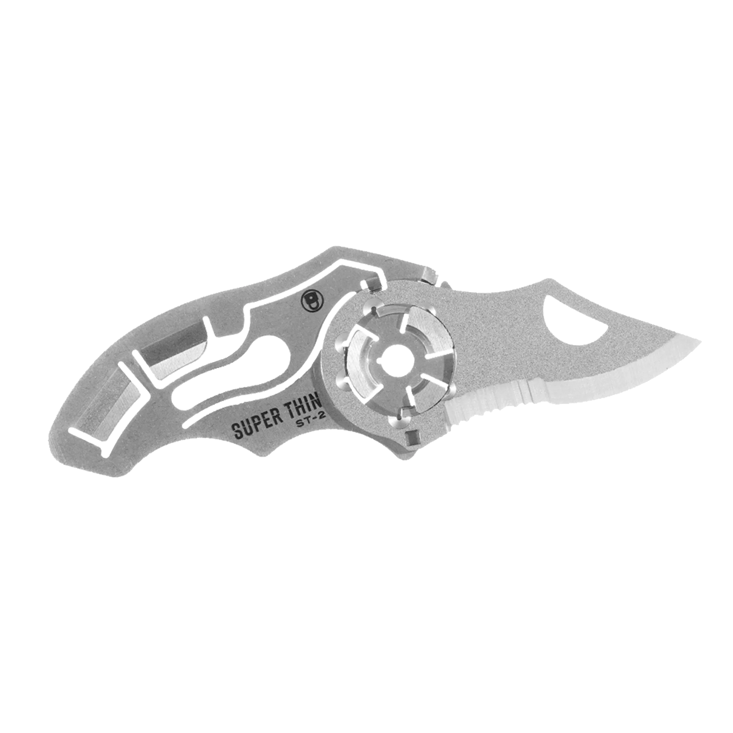 ST-2 is a Super Thin 440C stainless steel folding pocket knife with dual blade guards. Under all circumstances, the ST-2 is convenient to store and carry due to it's ultra-thin featherweight design and patented FlyOff technology.